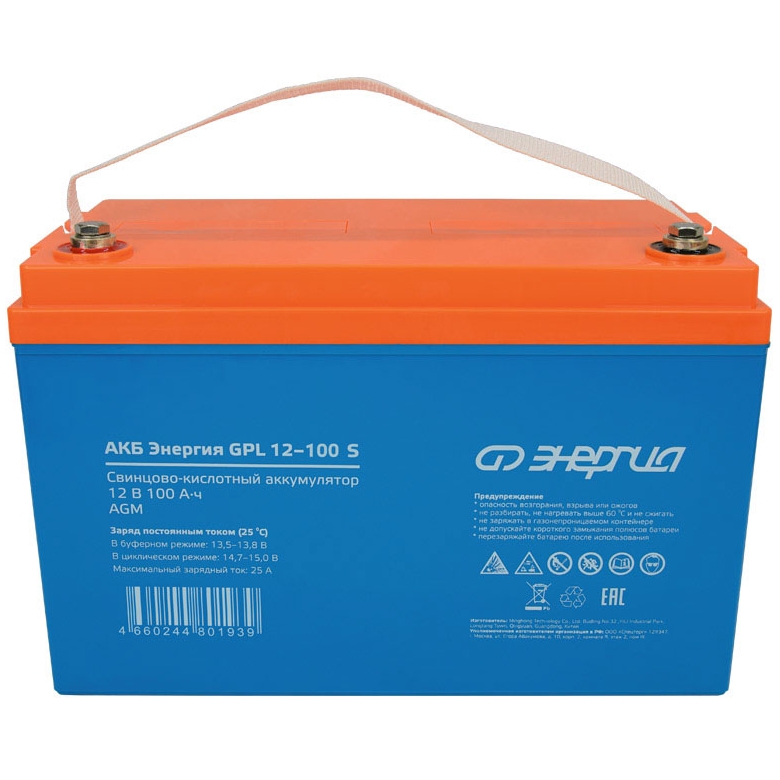 АКБ Энергия GPL 12-100 S используется для эксплуатации в буферном режиме в устройствах бесперебойного электропитания устройств охранной и пожарной сигнализации, информационных и телекоммуникационных систем и других типов оборудования, при работе которых не допускается перерывов в электропитании.