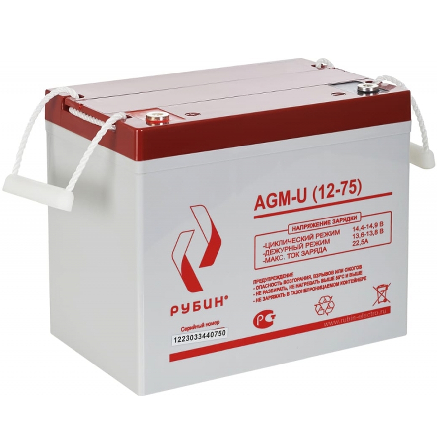 Аккумуляторная батарея Рубин 12V 75Ah AGM имеет прочный корпус из ABS пластика, система рекомбинации газов и защитные клапана экстренного сброса давления (VRLA) значительно увеличивают срок службы и делает их более безопасными и долговечными. В AGM аккумуляторе РУБИН используются передовые материалы, которые придают аккумуляторам высокую стойкость к циклическому заряду и разряду, что значительно увеличивает их срок службы и дополнительно обеспечивают высокую производительность в любых условиях.