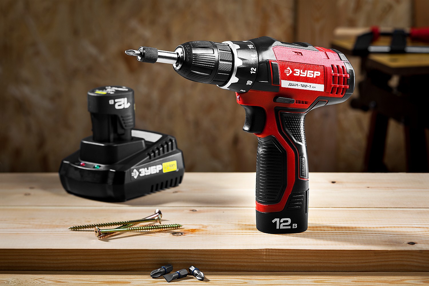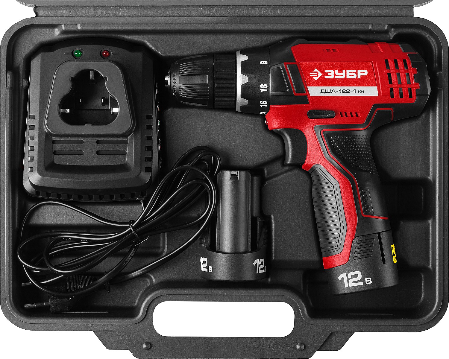 Особенности аккумуляторной дрели-шуруповерта ДШЛ-122-1 2 АКБ, в кейсе, ЗУБР