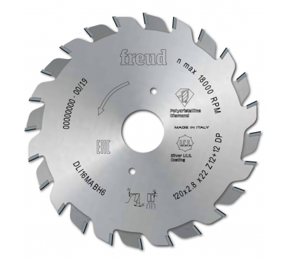Алмазный конический регулируемый пильный диск Freud DLI16MABH6 (D120 B2,8 b3,6 d22 Z12+12 DP H6) для ламината, МДФ и ДСП
