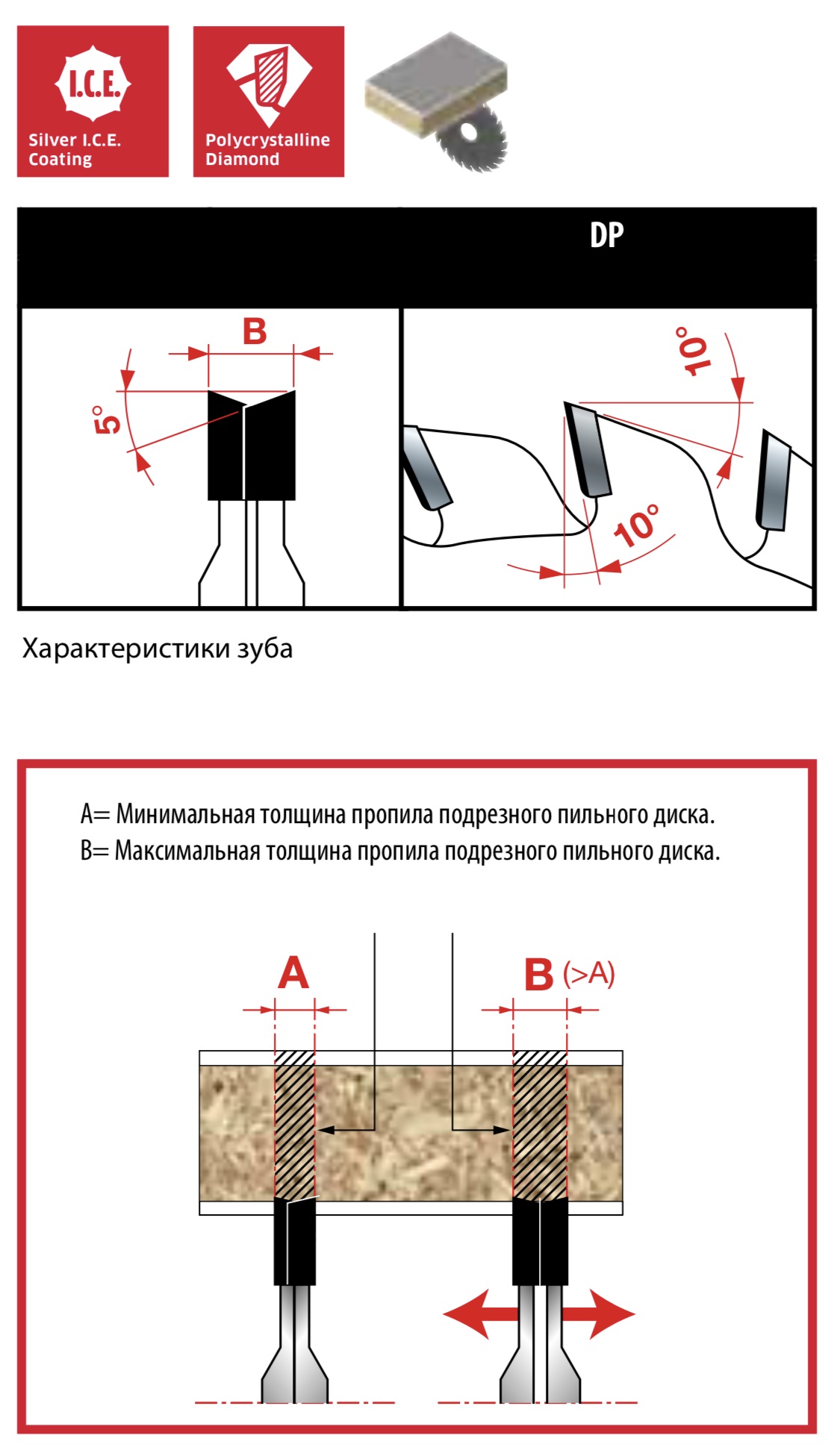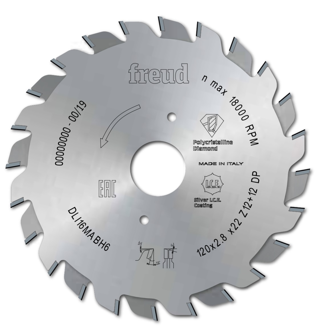 Алмазная регулируемая подрезная пила Freud DLI16MBАH6 – устанавливается на горизонтальных форматно-раскроечных станках без регулировки глубины подрезания для подрезки ДСП или МДФ. Максимальная глубина подрезания 2 мм. Диск имеет переменный 5 градусов зуб, с поликристаллическими вставками положительным передним углом.