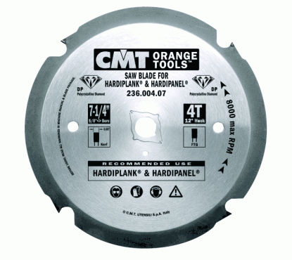 Алмазная пила СМТ – используется для эффективного распила твёрдых абразивных материалов, таких как Hardieplank, and Hardiepanel, пластика, различных плитных ламинированных материалов и твёрдых пород древесины, фиброцемента, гипсокартона. Дисковая пила с зубьями из поликристаллического алмаза PCD серии 236. Диск пильный отлично подходит для фиброцементных панелей Хардипланк ( Hardieplank ), Хардипанель, Eternit, Swisspearl, Fermacell, Ivarplank, а также для деревосодержащих панелей ДСП, МДФ, искусственного камня Кориан, дюропласт, Треспа и термопласт.