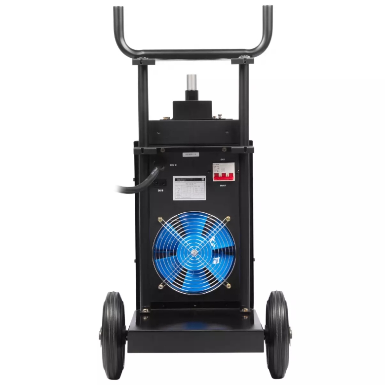 - Тележка для перемещения аппарата, механизма подачи проволоки, газового баллона и комплектующих. Тележка оснащена передними вращающимися колесами с тормозом и высокими устойчивыми задними колесами.