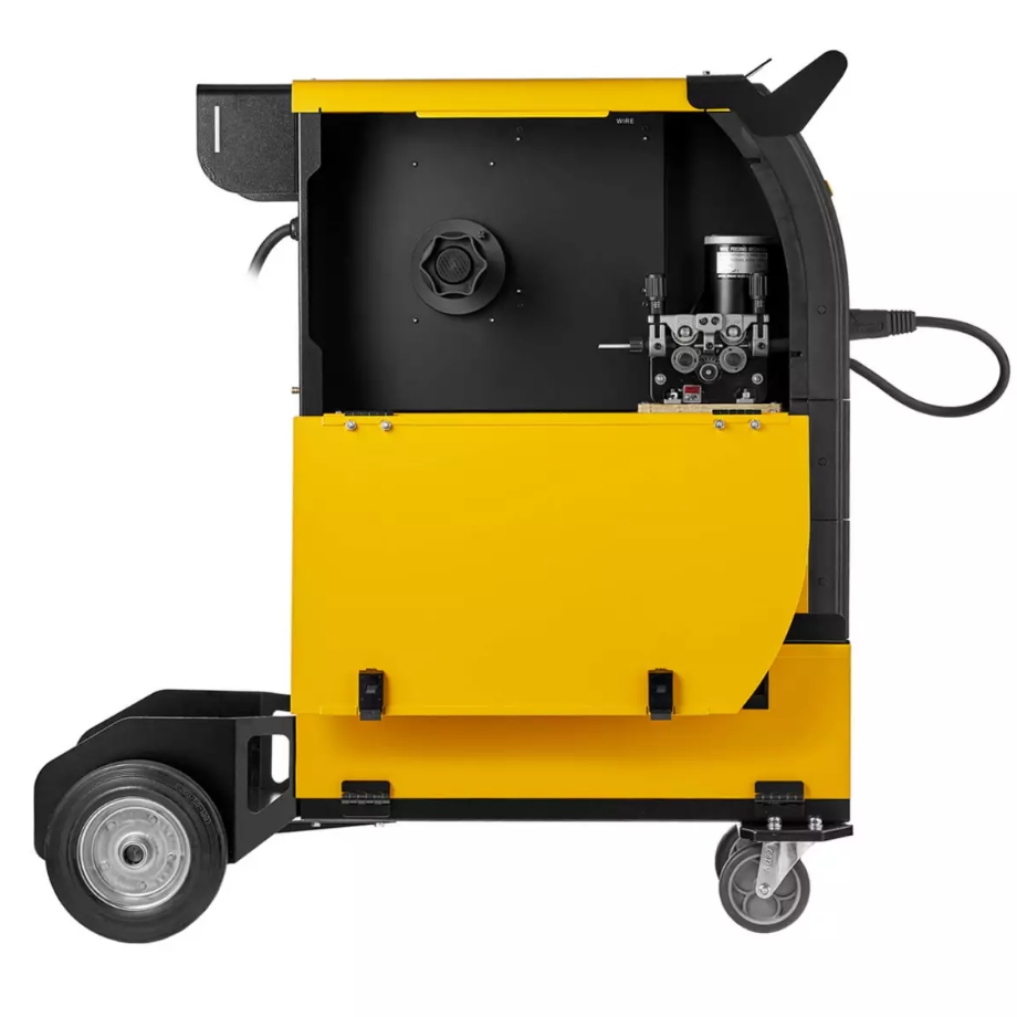 - 4-х роликовый металлический механизм подачи проволоки. Используется сварочная проволока диаметром от 0,8 до 1,2 мм. Возможно установить катушку с проволокой весом до 18 кг (D300) и регулировать скорость подачи проволоки от 3 до 16 м/мин.