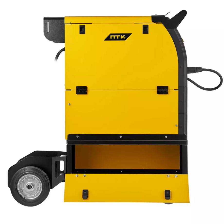- Сборная платформа для перемещения газового баллона и съёмная боковая полка для сварочной горелки и ЗИП. Наличие в корпусе аппарата скрытого ящика для инструментов.