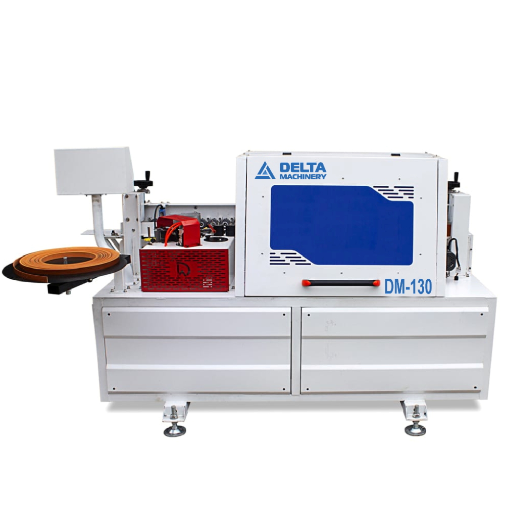 Автоматический кромкооблицовочный станок Delta Machinery DM-130 используется для облицовывания прямолинейных мебельных щитов и заготовок натуральным полосовым и синтетическим рулонным материалом. А также для снятия свесов (фрезерования) уже приклеенного кромочного материала одновременно как с нижней, так и с верхней части детали. Приклеивание ведется при автоматической подаче заготовки.