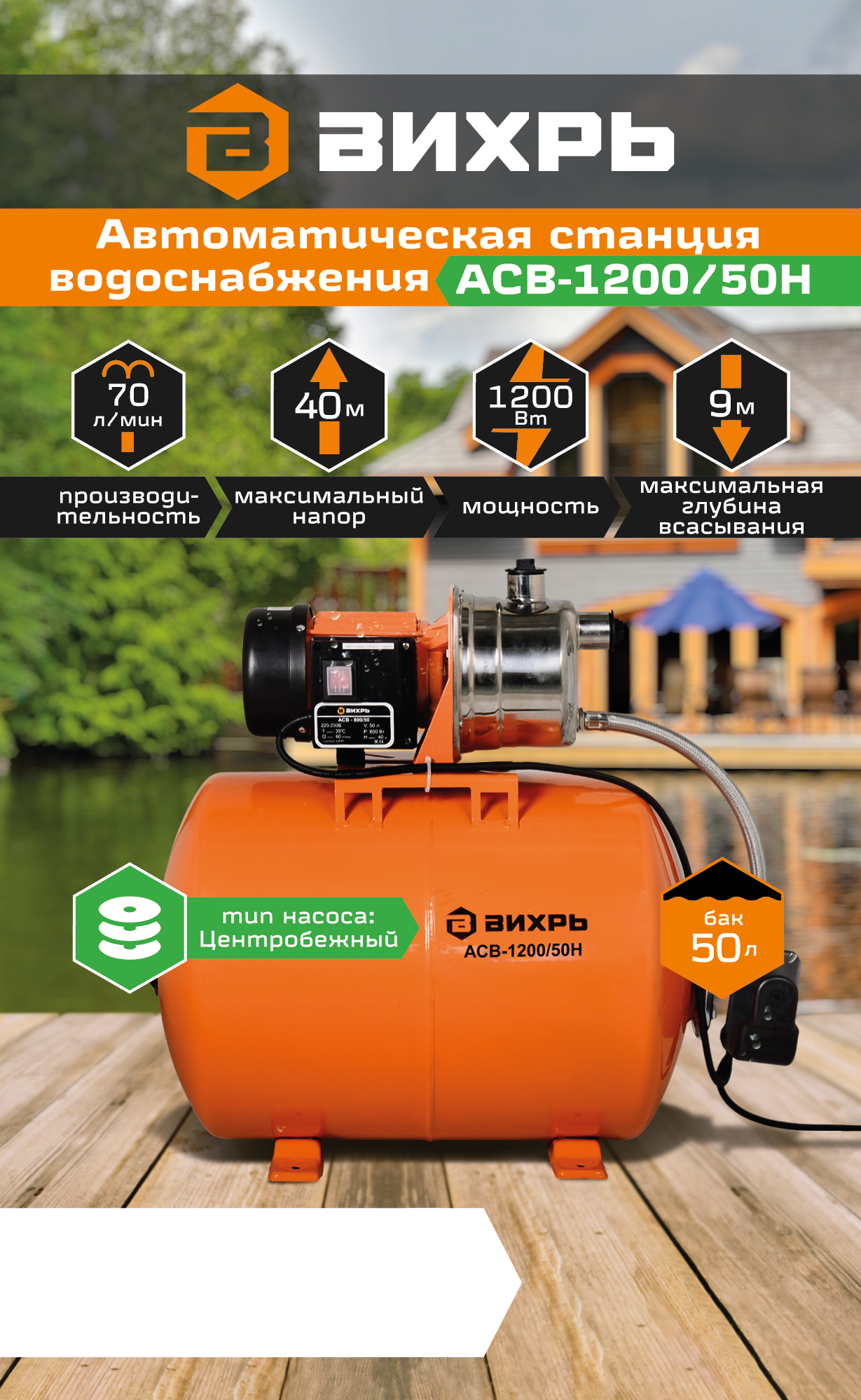Автономная станция водоснабжения АСВ-1200/50Н Вихрь