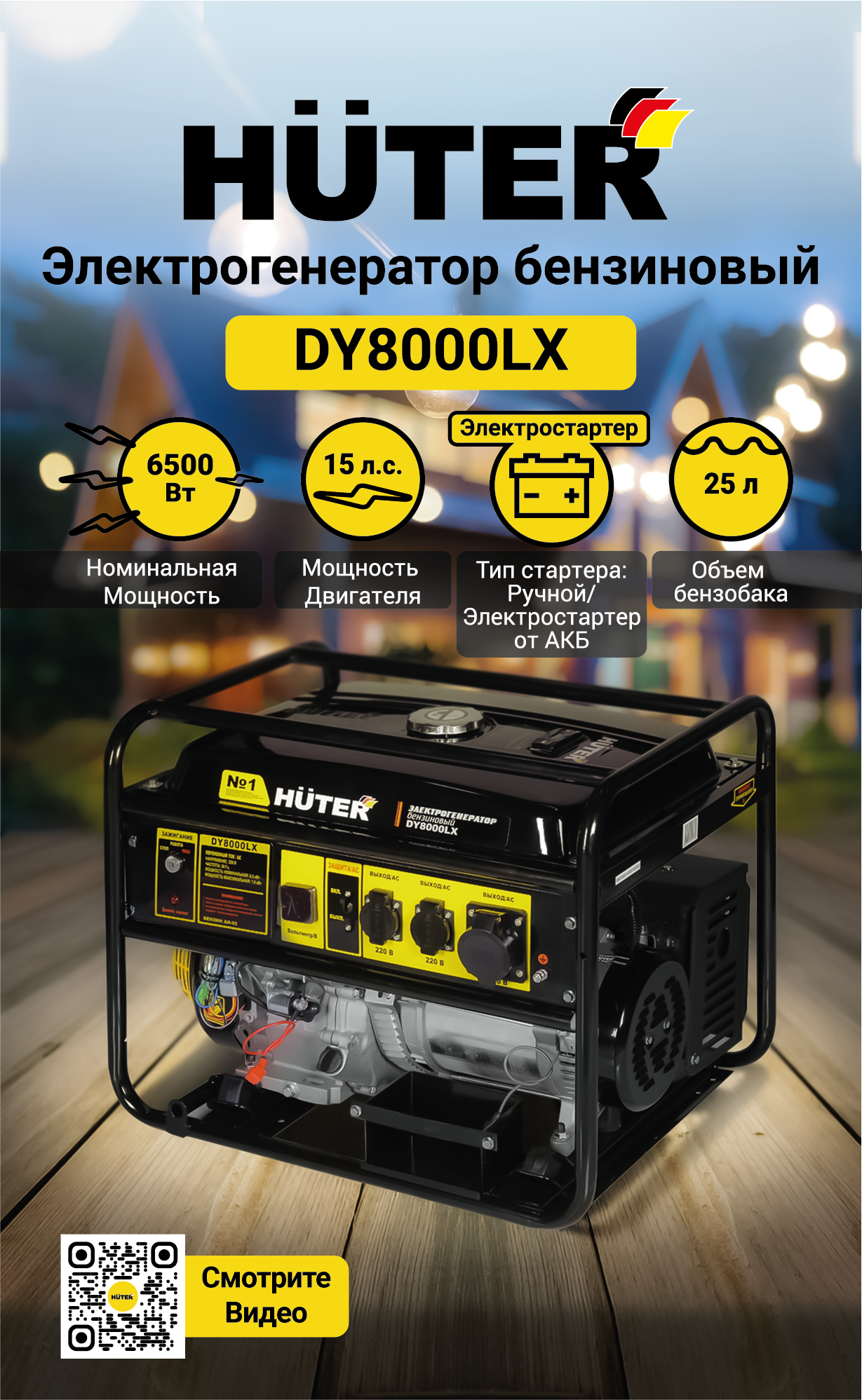 Технические характеристики бензинового/газового генератора huter dy8000lx