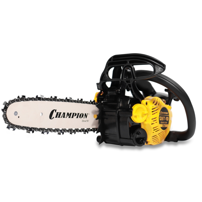 Бензопила CHAMPION 126T предназначена для распиловки стволов деревьев, веток, бревен и других заготовок из древесины с помощью специальной цепи в качестве режущего сменного инструмента.