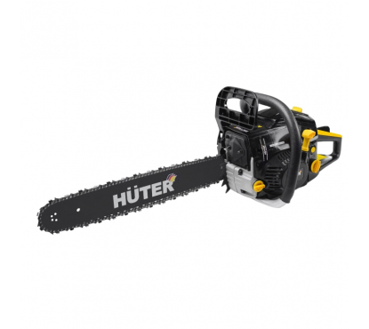Бензопила Huter BS-2300М используется для распилки древесины. Блокировки курка газа предотвращает случайное нажатие.