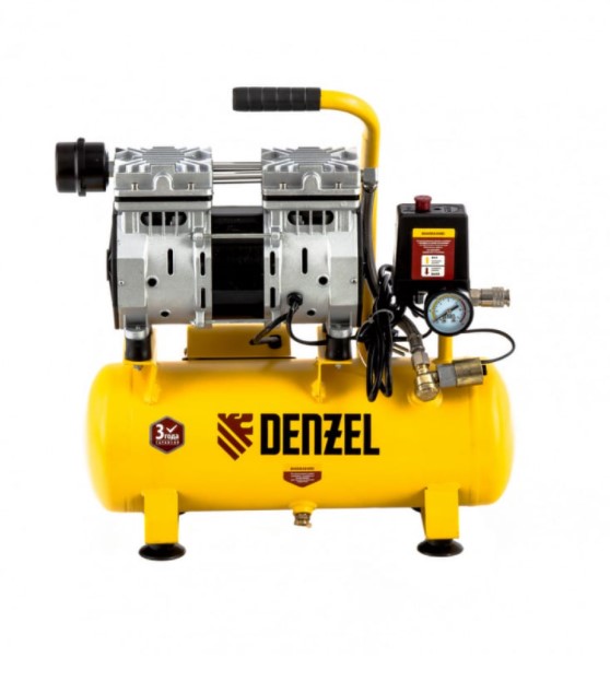 Безмасляный компрессор DENZEL необходим для производства сжатого воздуха. Его используют в автомастерских, на мебельном производстве, в при ремонте и в строительстве.