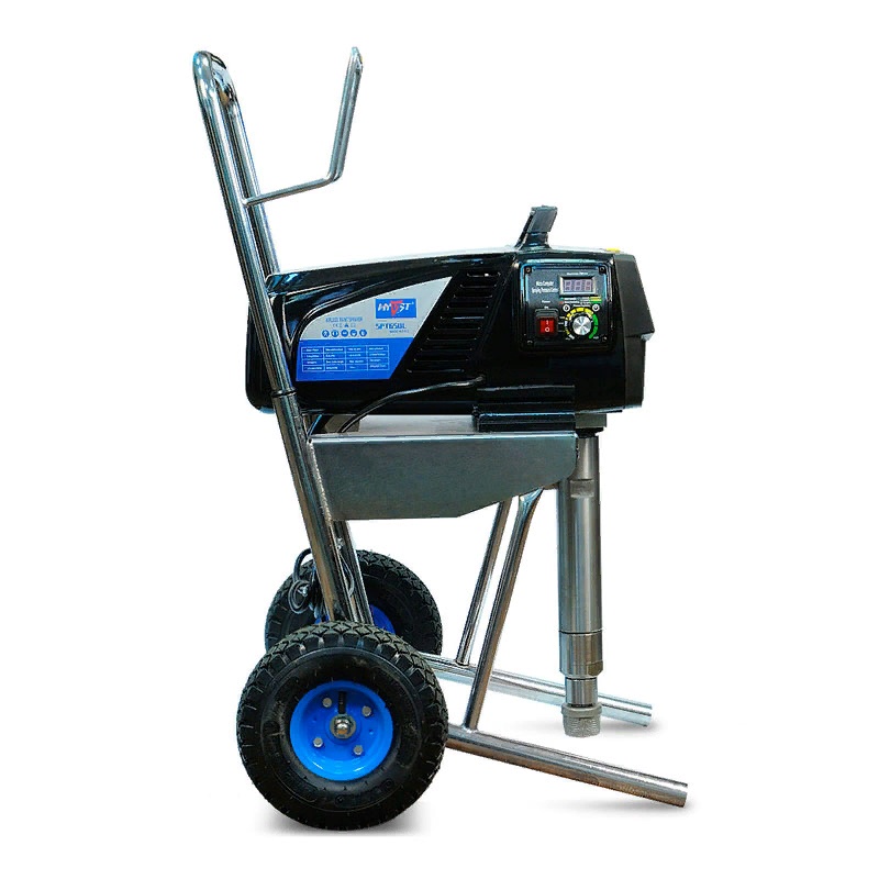 Безвоздушная электрическая окрасочная установка HYVST SPT650L 220V 50 HZ на телеге - используется для распыления высоковязких красок, огнезащитных составов, гидроизоляционных материалов, мастик, антикоррозионных красок, цинконаполненных материалов, шпатлевок, красок, эмалей, грунтов, и других любых материалов, пригодных для нанесения через поршневой безвоздушный окрасочный агрегат. . Система фильтрации позволяет использовать любые виды красок. Возможные комочки и примеси будут отсеиваться в процессе работы аппарата. Нет потребности разбавлять красящее вещество растворителями.
