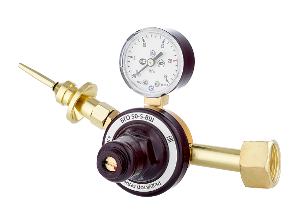 Редуктор гелиевый БГО 50—5—ВШ с поверенным манометром — крупногабаритная модель в алюминиевом корпусе, предназначенная для наполнения латексных и фольгированных шаров гелием. Редуктор оснащён нагнетательным клапаном с увеличенным сроком службы. Оснащён поверенным манометром (срок поверки 2 года). Изготовлен с учётом требований ГОСТ 13861-89.