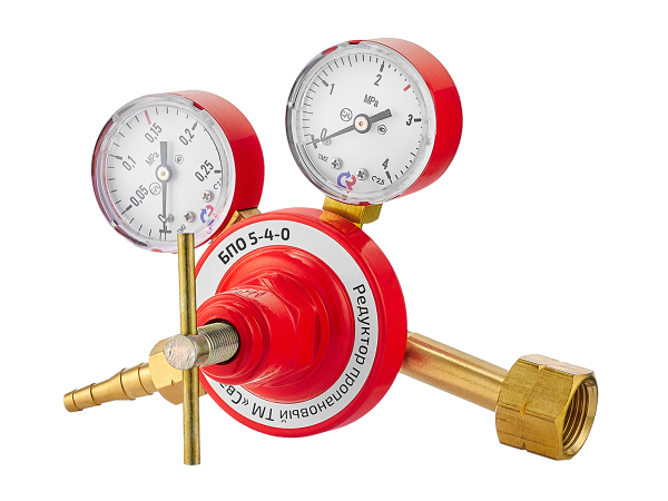 Редуктор пропановый БПО 5—4—0 с двумя поверенными манометрами — крупногабаритная модель в прочном латунном корпусе, предназначенная для понижения и регулирования давления газа, поступающего из баллона, при газосварочных и газорезательных работах. Оснащен поверенными манометрами (срок поверки 2 года) и полностью соответствует требованиям ГОСТ 13861-89.