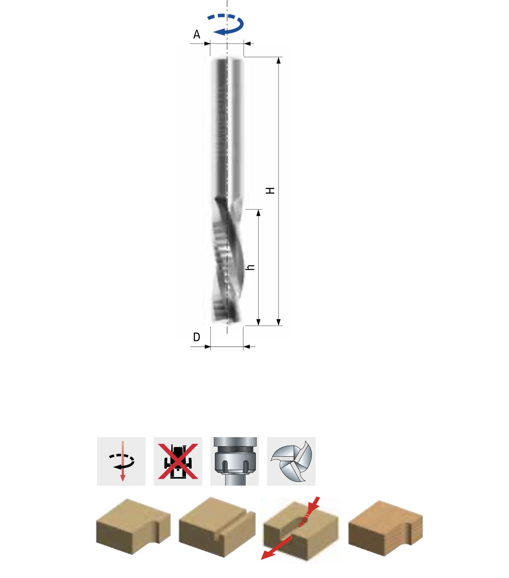 Черновая спиральная фреза Freud SCH3DRN542R- отрицательная фреза с правосторонним вращением, применяется для фрезерных станков с ЧПУ. Фреза имеет стружколом для высокоскоростной обработки. Используется для контурной обработки, выборки паза пазов и черновой плунжерной обработки композитных древесных материалов и массива древесины под углом. Фреза имеет отрицательную спираль, способствует зажиманию заготовки, удаление стружки вниз.