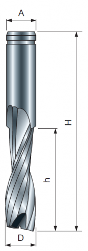 Допускает обработку с большой скоростью подачи в заготовках, зафиксированных на рабочем столе станка. Фреза имеет заточку по спирали, что позволяет получить гладкое и чистое резание. Спираль направлена для выброса стружки вниз, соответственно обеспечивается превосходное качество обработки верхней пласти.