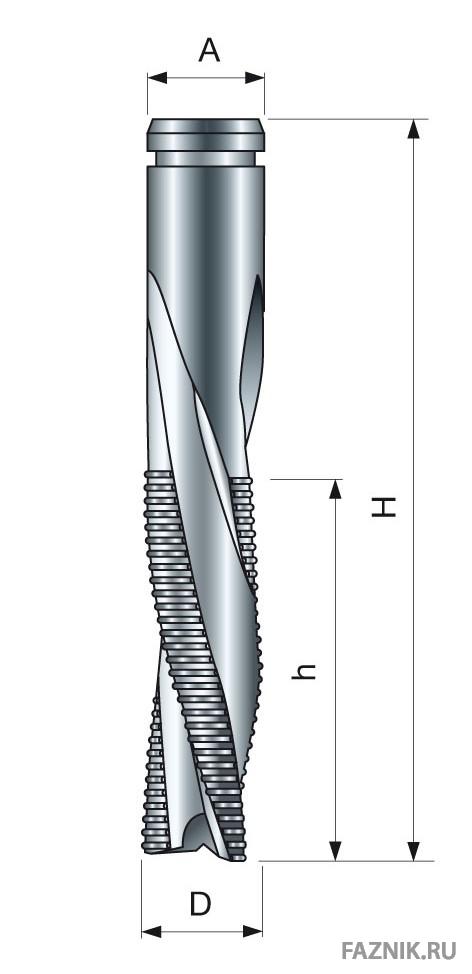 Допускает обработку с большой скоростью подачи в заготовках, зафиксирорванных на рабочем столе станка. Фреза заточена по спирали. Стружечная канавка изготовлена с измельчителем стружки и направлена для выброса ее вверх, что обеспечивает превосходное качество обработки нижней пласти.