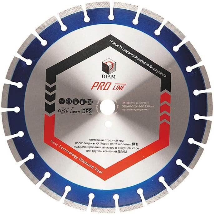 Диск алмазный отрезной по железобетону Pro Line (350х3,2х10х25,4) DIAM 030634 - является сменным элементом для резчиков швов, бензорезов и другого специального оборудования. Применяется для резки железобетона, старого высокопрочного бетона. При изготовлении диска применяется технология DPS- позиционирования алмазов в режущем слое. Данная технология обеспечивает высокую, равномерную скорость резания, а также увеличивает ресурс инструмента до 80% по отношению к диску, произведенному обычным способом. Высота алмазного слоя — 10 мм.