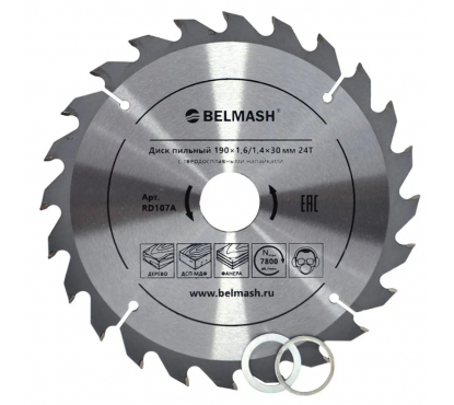 Диск пильный BELMASH 190х1,6/1,4х30/25,4/22,2 24Т предназначен для распиловки различных материалов.