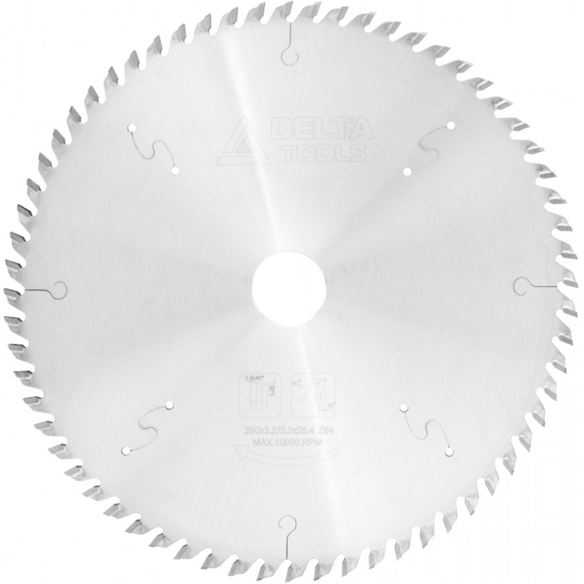 Диск пильный для ФРС DELTA TOOLS 200x3.2/2.2x25.4 Z=64 трапеция по ЛДСП, МДФ