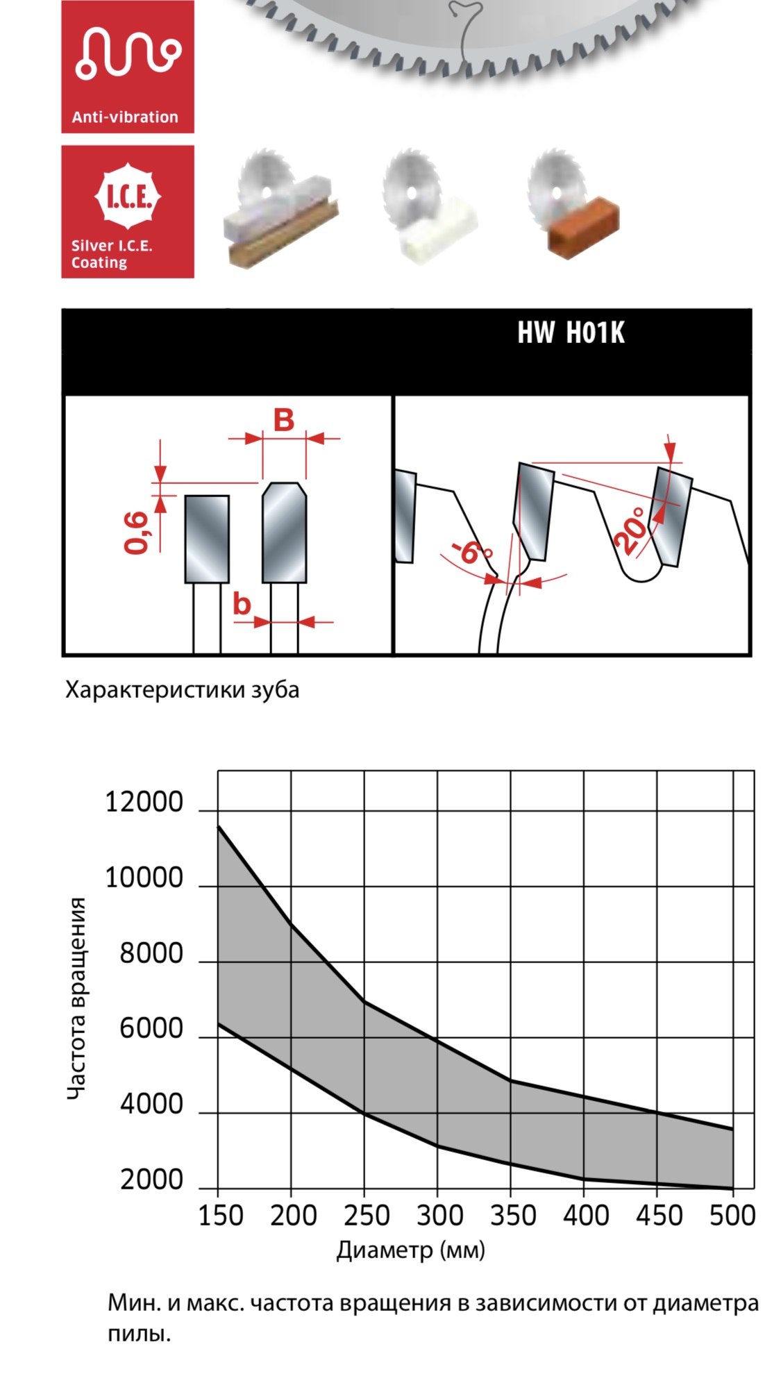 | Форма зуба | прямой трапециевидный зуб с отрицательным передним углом |