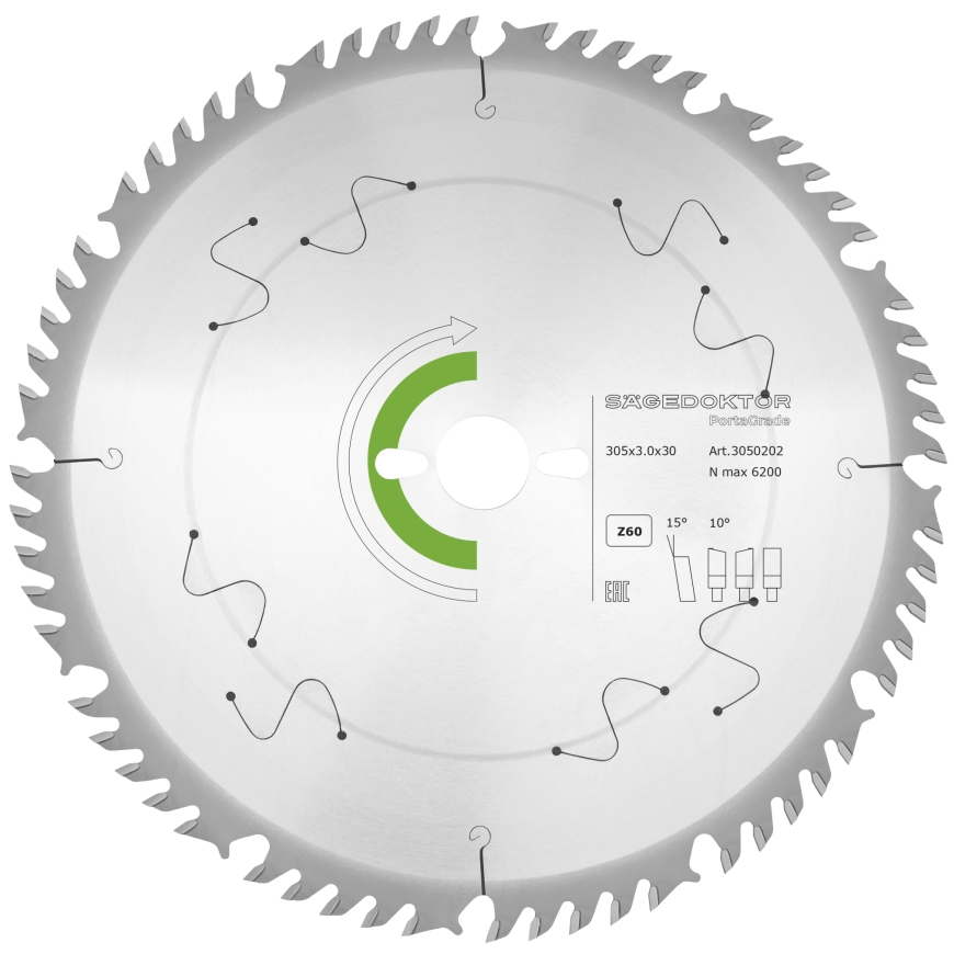 Диск пильный SAGEDOKTOR (305x3.0x2.0x30x60Z) СВ15 В-07 ProGrade Pinholes - комбинированная столярная пила. Тип: универсальный. Назначение: чистый рез. Предназначен для высококачественной обработки: твёрдой и мягкой древесины вдоль и поперёк волокон, фанеры, плитных материалов, неармированных пластиков.