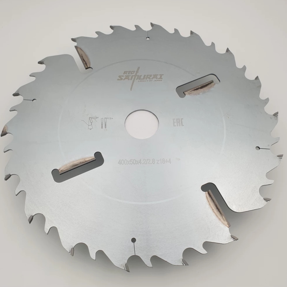 Диск пильный SAMURAI (400x50x4.4/3.0 z18+18+4 WZ) по древесине твердых и мягких пород используется для многопильных станков.