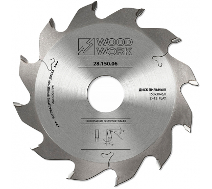 Диск пильный Woodwork (D150 B/b4/3.0 d30 Z12 α12°) по мягкой и твёрдой древесине, фанере, МДФ для формирования прямолинейного паза в различных материалах.