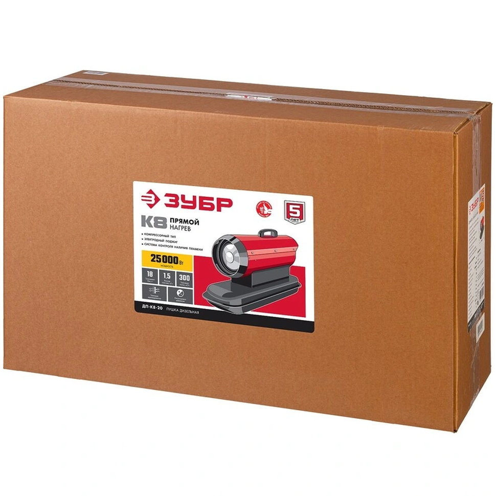 Дизельная тепловая пушка ЗУБР 25 кВт ДП-К8-25 используется для генерации горячего воздуха, который может быть использован для обогрева, сушки промышленных, складских, вспомогательных помещений.