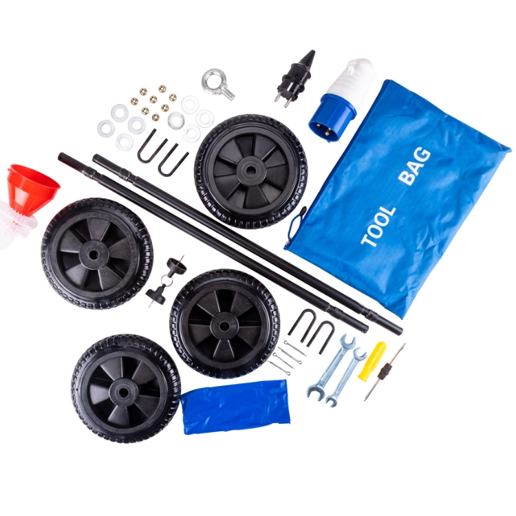 - Комплект аксессуаров в тканевой сумке (4 U-образных крепления для колёс, 8 шайб, 4 стопорных шпильки) - 1 шт.;