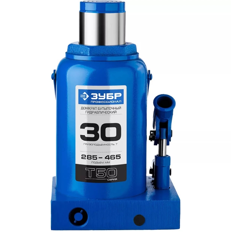 Домкрат бутылочный гидравлический ЗУБР 30т 285-465мм Профессионал используется для работы в автомастерских. Необходим для при обследовании подвески и ходовой автомобиля.