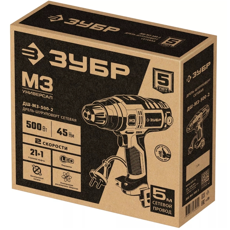 Технические характеристики сетевой дрели-шуруповерта ЗУБР ДШ-М3-500-2
