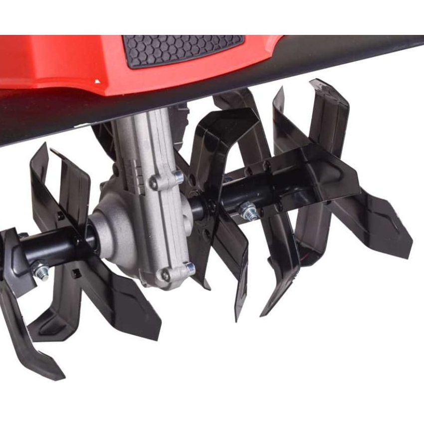 - Прочные фрезы - 6 металлических фрез позволяют без особых усилий вспахать и очистить от сорняков почву