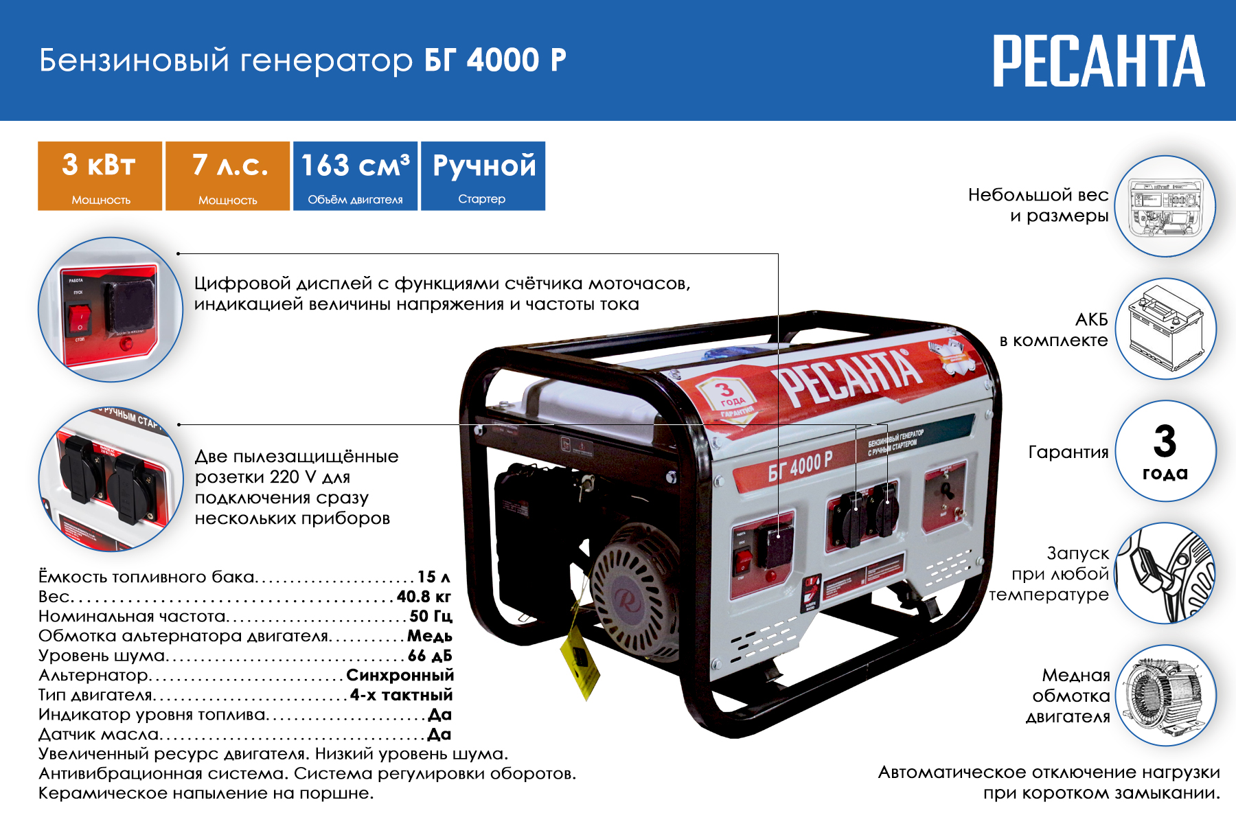 Технические характеристики Ресанта БГ 4000 Р 64/1/44