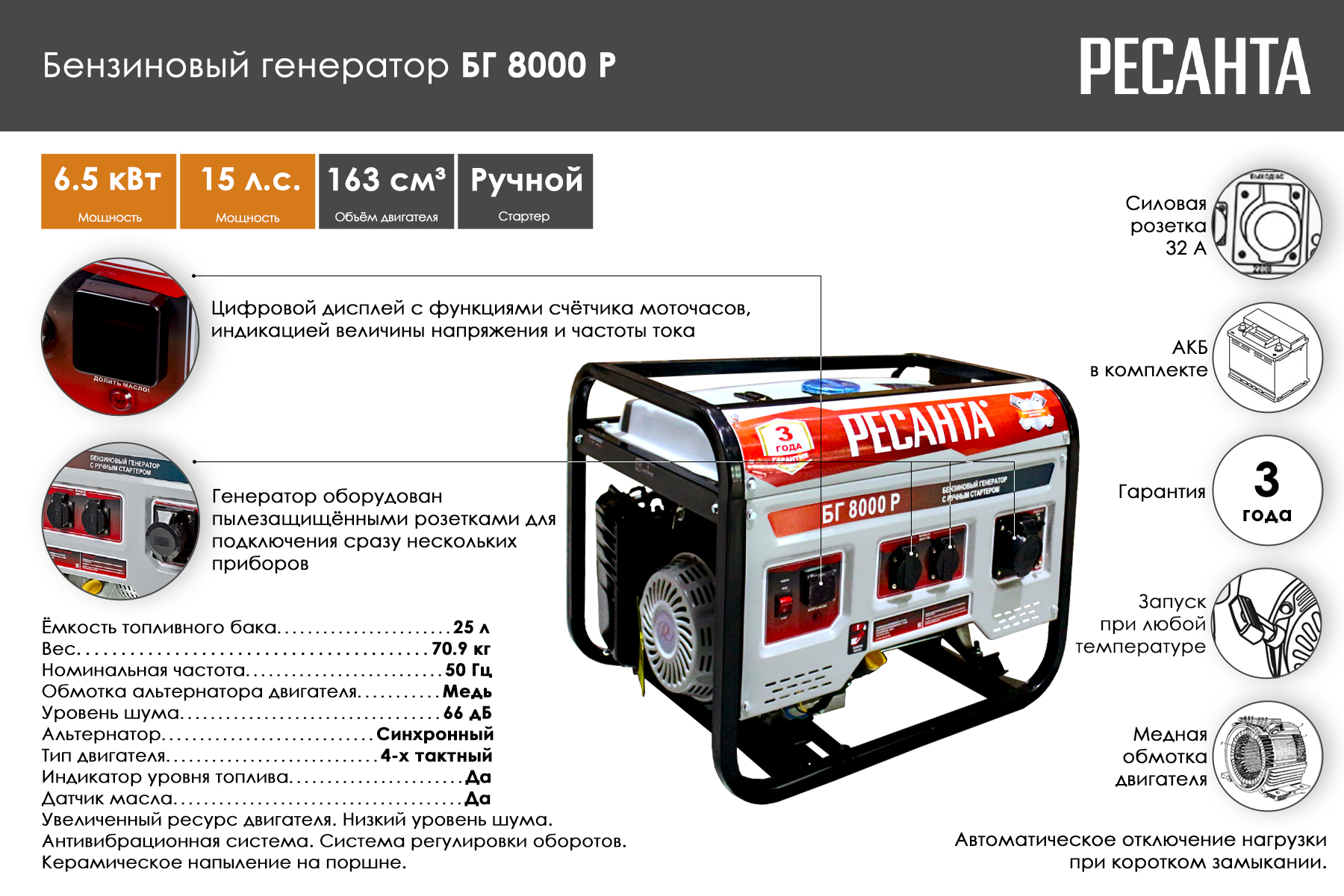 Технические характеристики Ресанта БГ 8000 Р 64/1/47