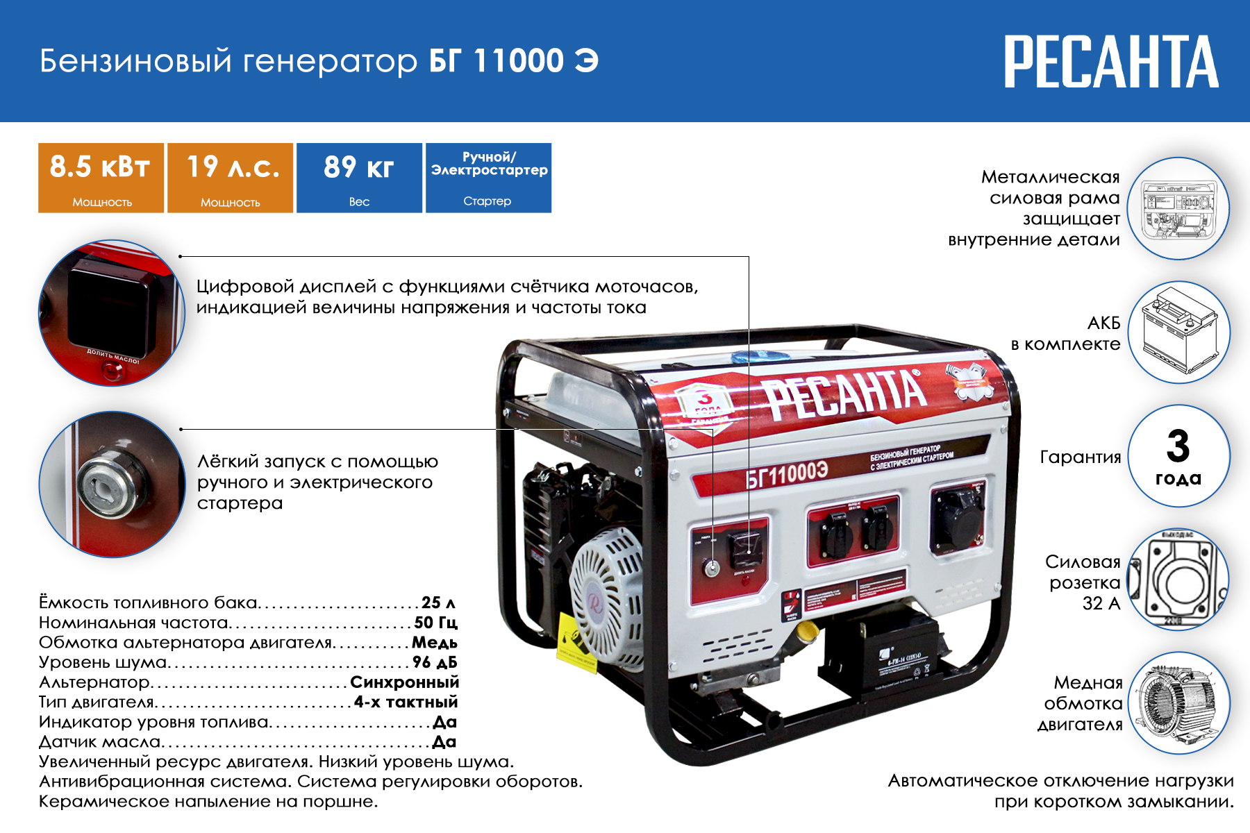 Технические характеристики Ресанта БГ11000Э 64/1/58