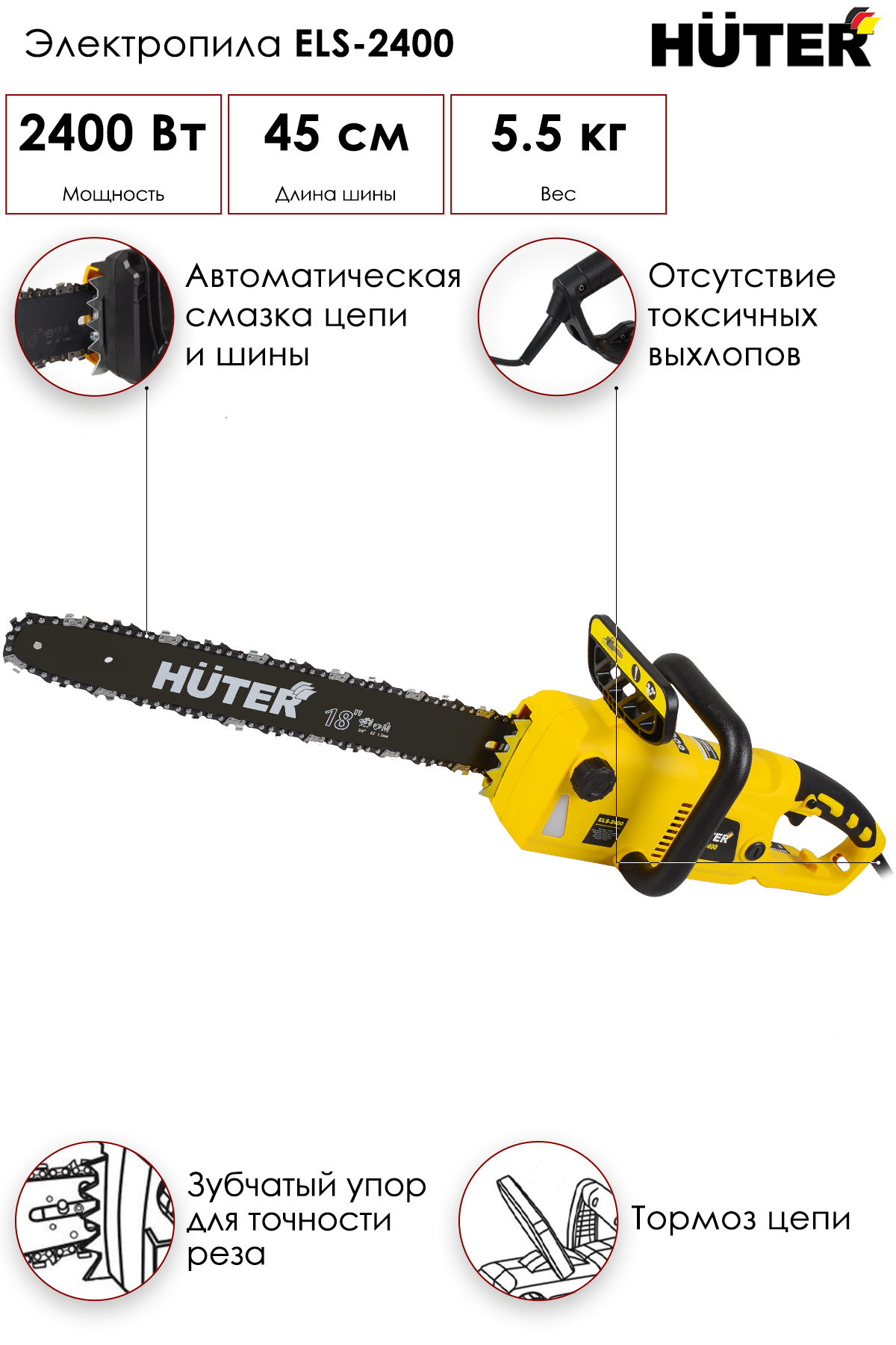 Электропила Huter ELS 2400 используется для распиливания древесины разной плотности и размеров. Устройство предназначено для заготовки дров или выполнения ремонтных работ.