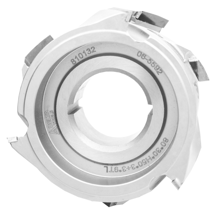 Фреза алмазная фуговальная DELTA TOOLS 80x30x50 3+3x9Т L для кромкооблицовочных станков используется для форматирования и фугования поверхности плитных заготовок на узлах предварительного фрезерования кромкооблицовочных станков.
