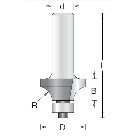Фреза Dimar 1550929 антиперелив кромка R8мм D28,6x13,5 L61 подшипник пластик, хвостовик 12