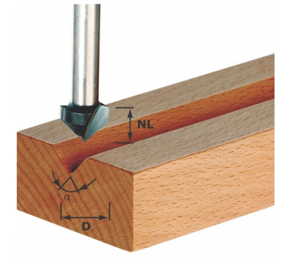 Фреза для выборки V- образного паза HS с хвостовиком 8 мм FESTOOL HS D11/9.5/60GRAD используется для изготовления декоративных пазов с 2 различными углами.