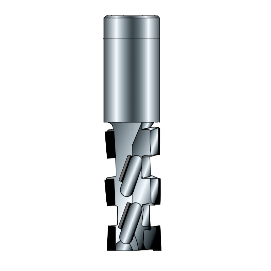 Концевая фреза Freud в DP-исполнении с торцевым зубом HW и с алмазными пластинами в 4 ряда деаметром 20 миллиметра. В каждой рабочей точке одновременно работают по 2 зуба. Предназначена для сверления и окантовки (на средней скорости) массива твердой древесины (без сучков), фанерованной МДФ или МДФ с покрытием. Эти фрезы способны работать с материалами толщиной до 66 мм. Скорость подачи: 8-10 м/мин.