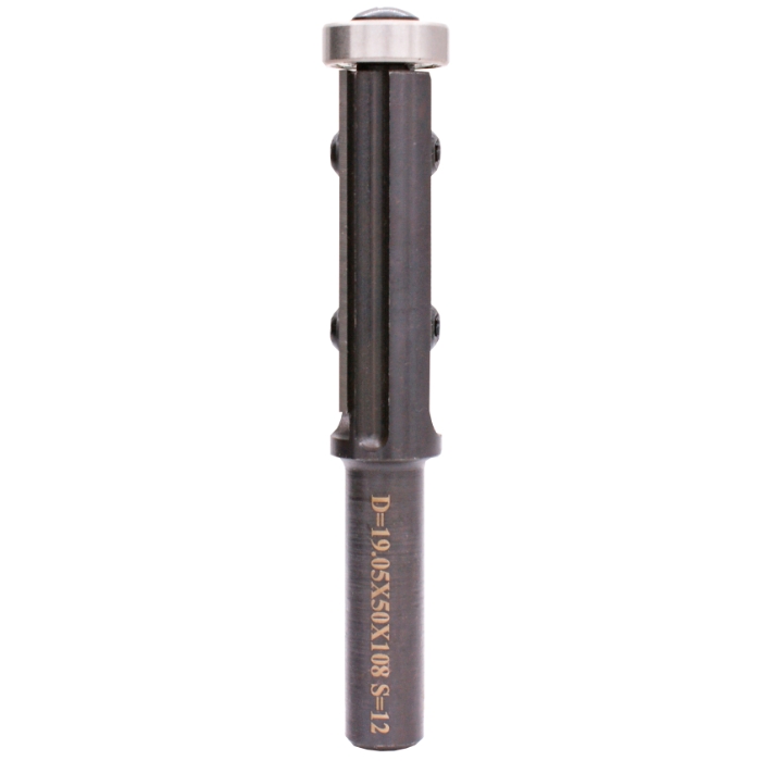 Фреза обгонная со сменными ножами нижний подшипник DELTA TOOLSD=19.05x50х108 S=12 используется для чистовой криволинейной/прямолинейной фрезеровки материала по копиру (шаблону) после черновой обработки фрезеруемой детали. Применяется на фрезерных станках.