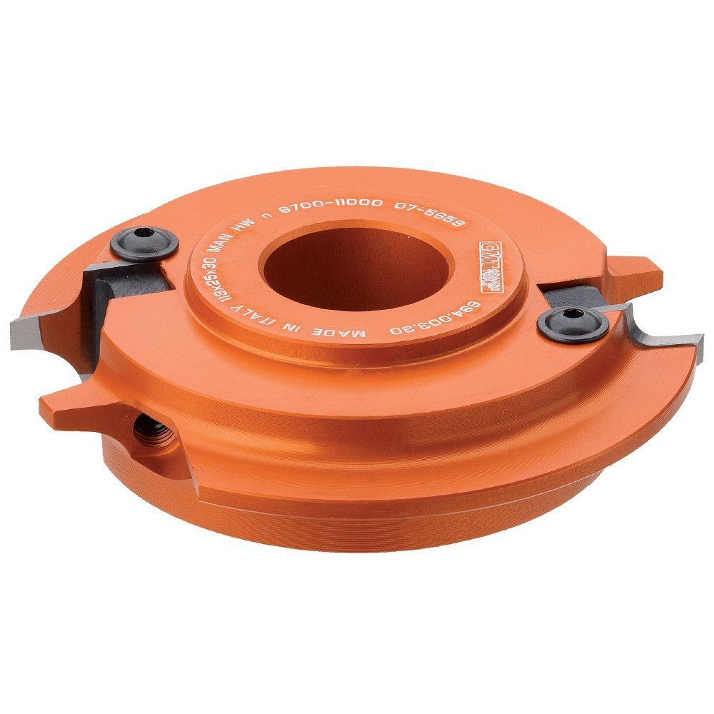 Фреза радиусная внутренняя СМТ диаметром 123 мм. со сменными ножами HM. Мульти-радиусную фрезу используют для двустороннего «скругления» на стационарных фрезерных станках для обработки древесины, ДСП, МДФ, OSB. Фреза имеет упрочнённый алюминиевый сплав с высокой сопротивляемостью к растяжению и ударным нагрузкам.