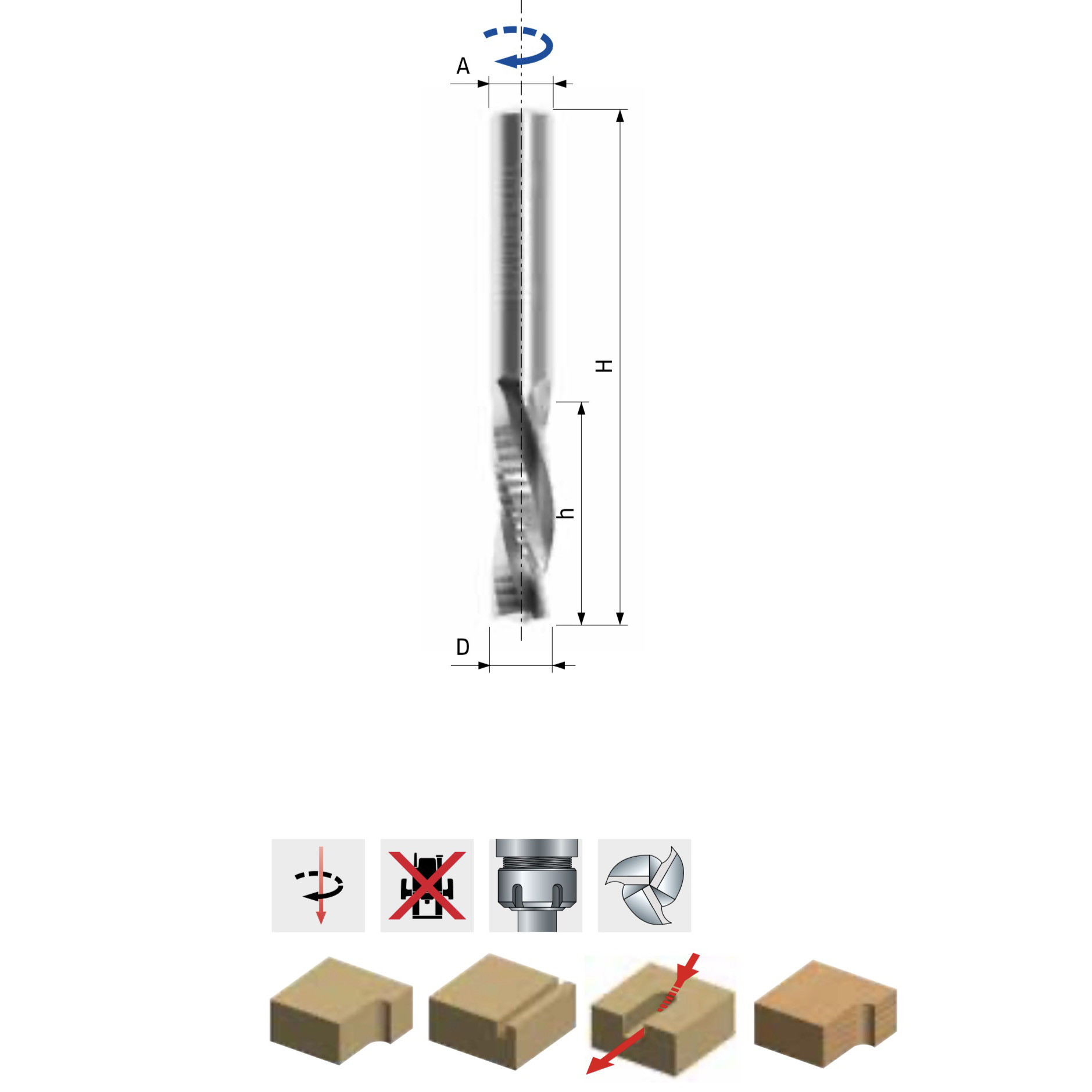 Фреза спиральная твердосплавная VEZOR D8 l32 h0 S8 LT80 Z2 LH черновая стружка вверх