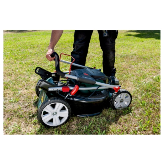 - Автоматическая настройка мощности двигателя в зависимости от высоты травы - максимальное время работы на одном заряде;