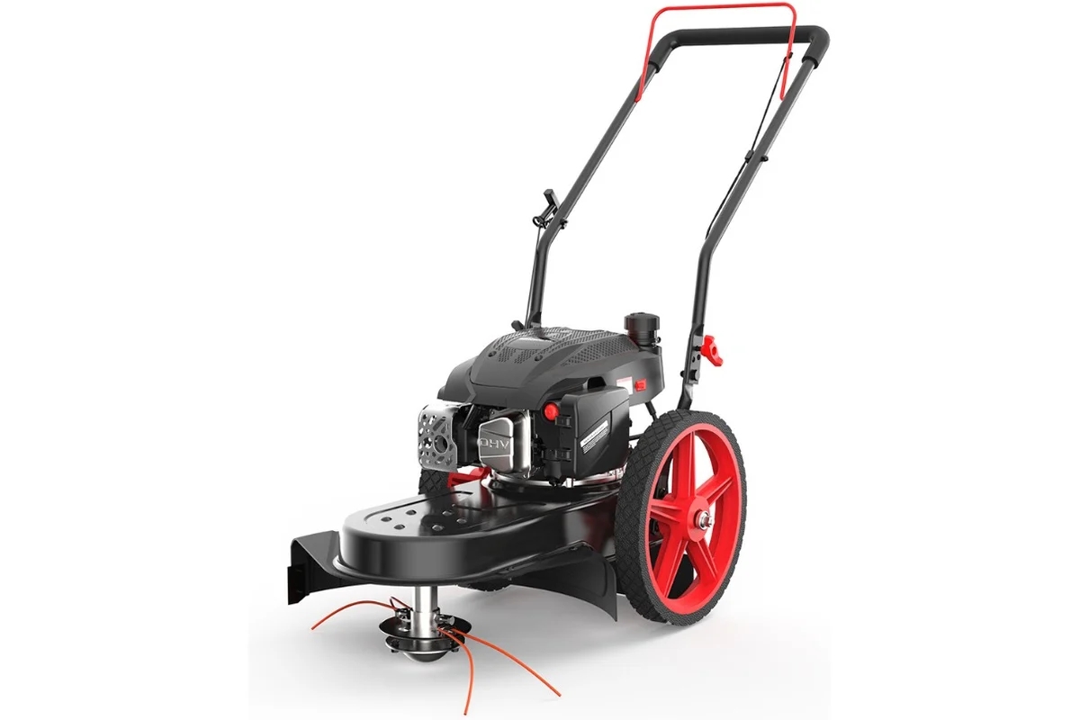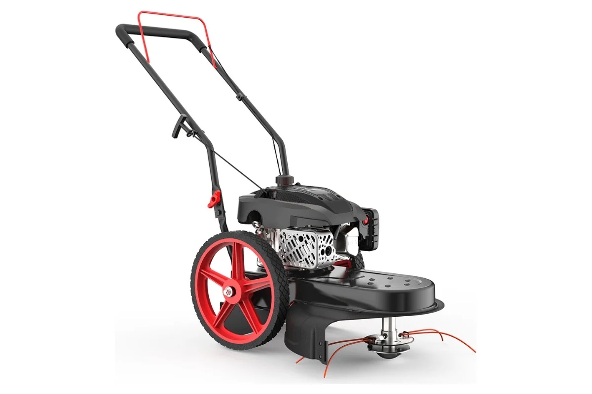 Бензиновый колесный триммер – это техника для ухода за участком, сочетающая в себе преимущества бензиновых триммеров и полноразмерных газонокосилок. Колесный триммер очень удобен для работы: благодаря колесам, его не нужно переносить на плечах, как обычный бензиновый триммер, поэтому без усталости можно обрабатывать большие площади. Ширина скоса у двухколесного триммера больше, чем у бензинового триммера, и даже больше, чем у некоторых моделей газонокосилок.