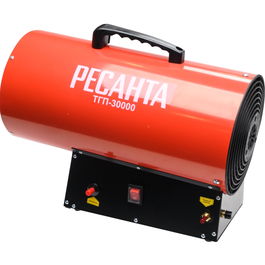Газовая тепловая пушка Ресанта ТГП-30000 применяется для обогрева и сушки помещений. Работает на сжиженном газовом топливе. Топливо необходимо для получения горячей атмосферы в камере сгорания, а электроэнергия, подводимая к устройству, необходима для питания вентилятора, нагнетающего воздух, и для функционирования автоматики.