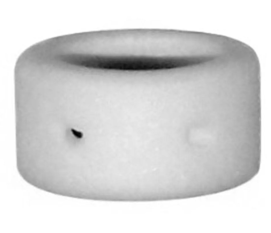 Газовый диффузор - используется для подачи газа в пространство между анодом и катодом плазмотрона. Причиной для замены диффузора могут послужить загрязненные каналы. Это происходит от того, что плазмообразующий газ не проникает в плазменную камеру в достаточном объеме. Слишком большой поток газа так же губителен для электрода, - излишек воздуха быстро разрушает вольфрамовый/циркониевый/гафниевый сердечник электрода.