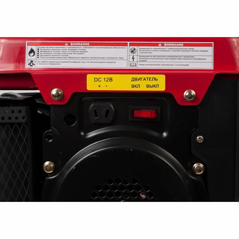 Генератор бензиновый инверторного типа DDE DPG2051i мини - используется для походов, а также в загородных домах для резервного питания электроприборов (осветительных систем, холодильников) общей мощностью не более 1 кВт. Передняя панель включает вольтметр для контроля выходного напряжения и стикер с основными параметрами и правилами эксплуатации.