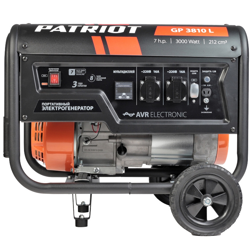 Генератор бензиновый PATRIOT GP 3810 L используется в качестве автономного источника энергии. Характеризуется оптимальным соотношением мощности двигателя и альтернатора, что является гарантией его стабильной работы на номинальной мощности.